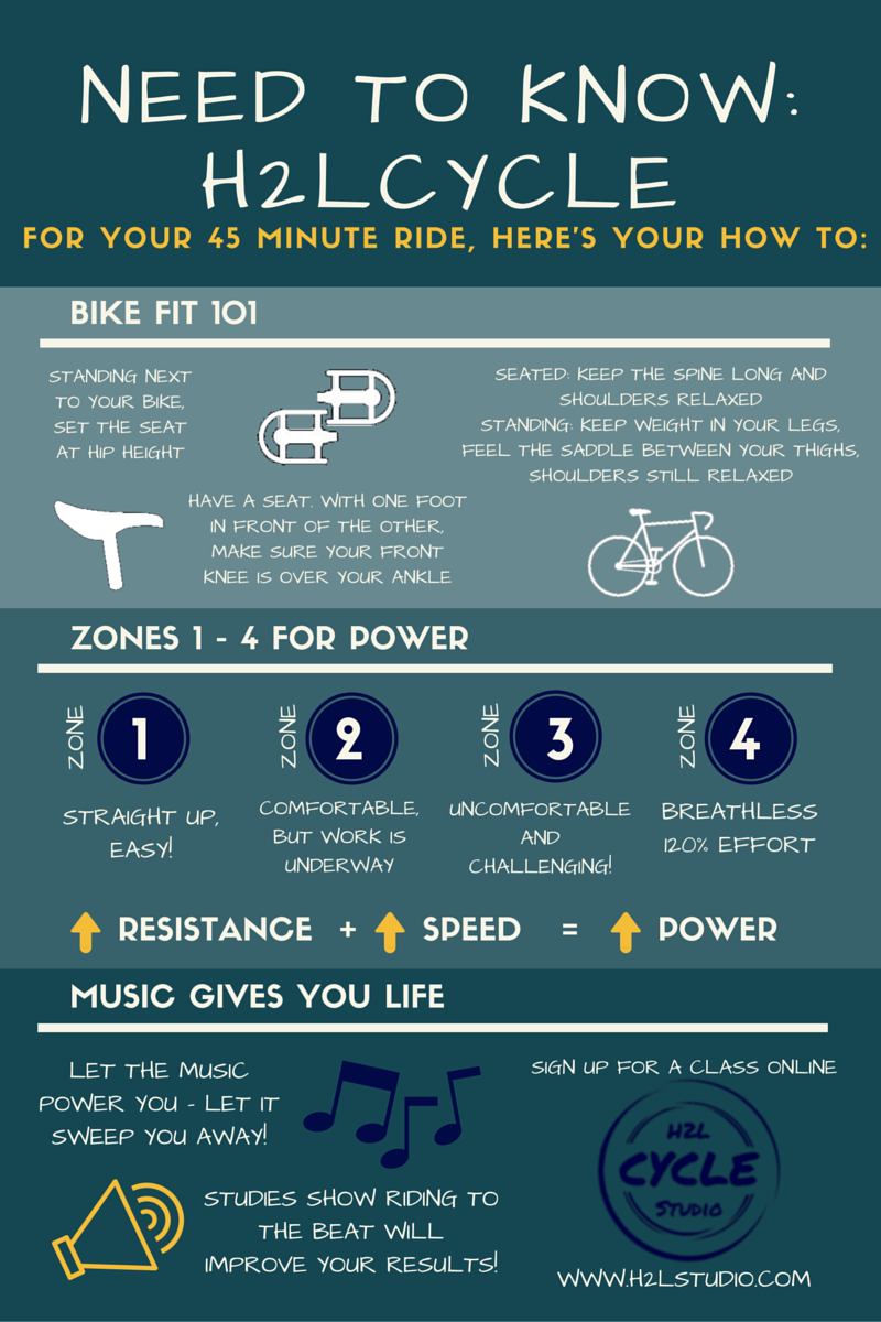 H2LCycle – Need to Know by admin | Apr 20, 2016 | Cycling H2L Cycle Infographic Still learning the bikes at H2L Studio? Here’s a little guide to make sure you’re getting the most out of each class. Let’s Ride!